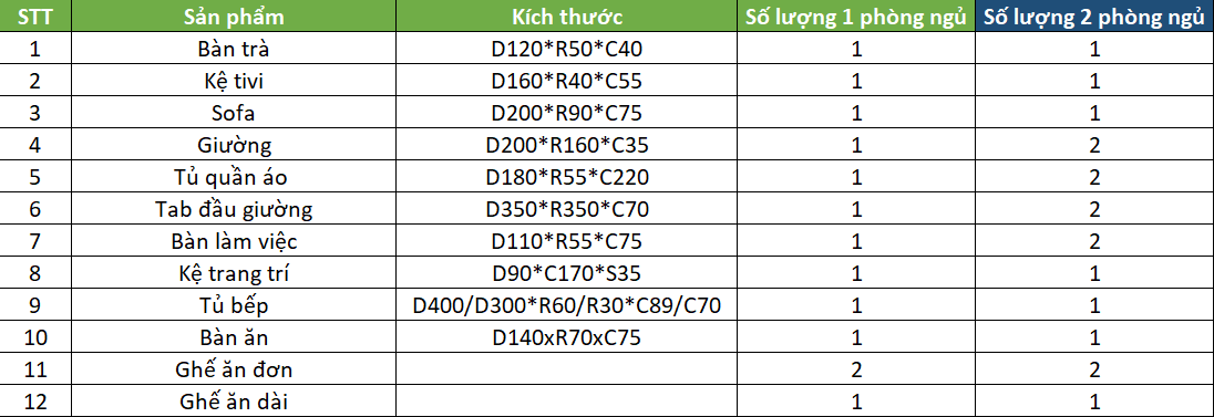 Khách hàng có thể tăng, giảm số lượng sản phẩm hoặc yêu cầu thiết kế thêm sản phẩm tùy vào diện tích và nhu cầu