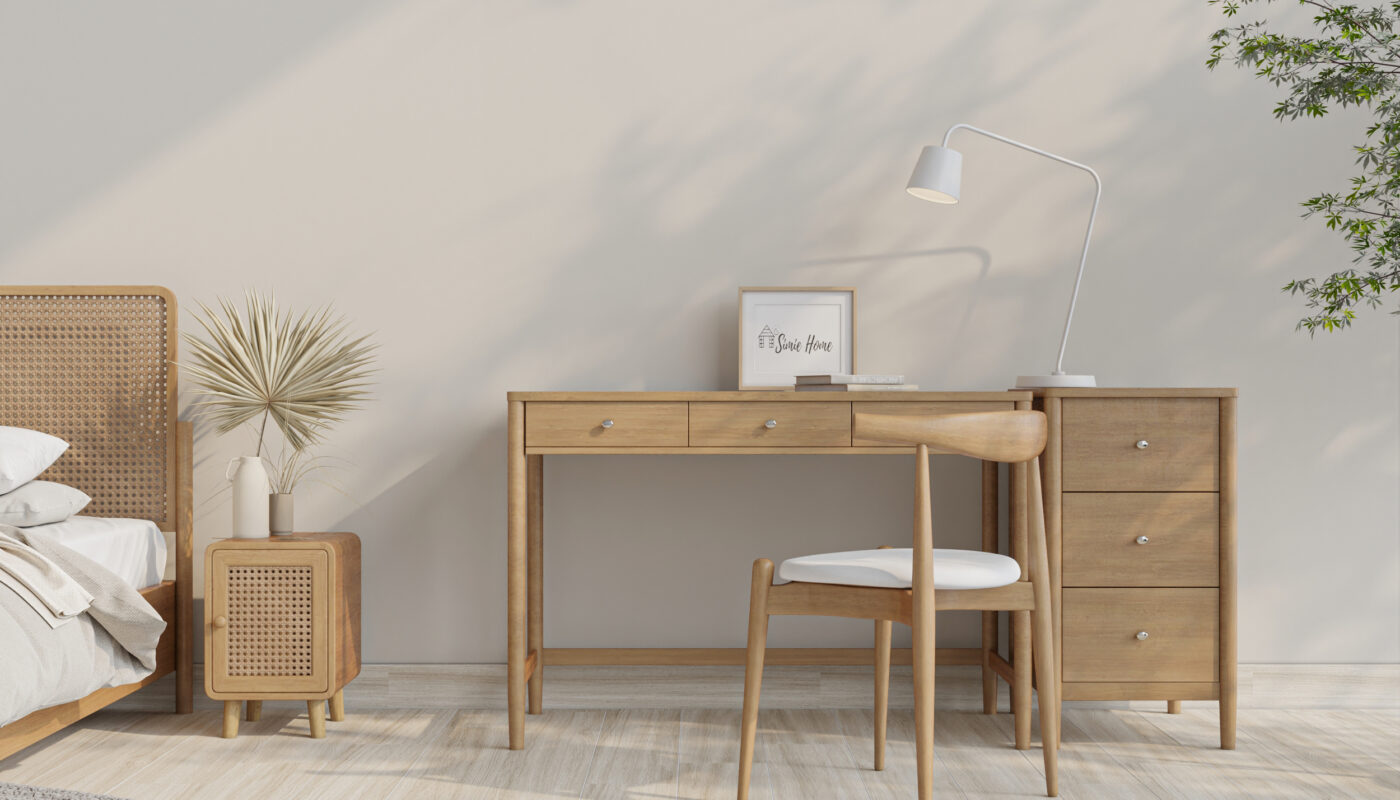 • Nội thất phòng ngủ gồm 5 món: giường ngủ, tủ quần áo và tab đầu giường, bàn làm việc và ghế đơn