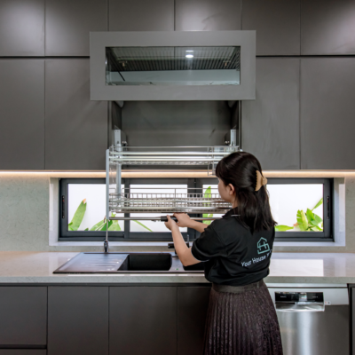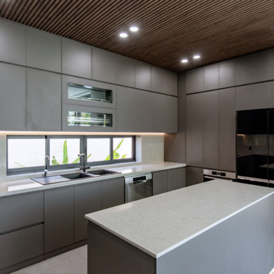 HÌNH ẢNH THỰC TẾ THI CÔNG TỦ BẾP CHỮ L Khách hàng Loại công trình Anh Tiến Nhà phố Vật liệu thùng Mặt đá bếp MDF An Cường BQ200 Kính bếp Phụ kiện bếp Kính cường lực 8mm Garis HÌNH ẢNH THỰC TẾ TỦ BẾP Vật liệu thùng: MDF Melamin An CườngVật liệu đá ốp: VicostonePhụ kiện tủ bếp: HafeleRay lề: HafeleỐp trần bếp: Tấm Acoustic An Cường VIEW MORE
