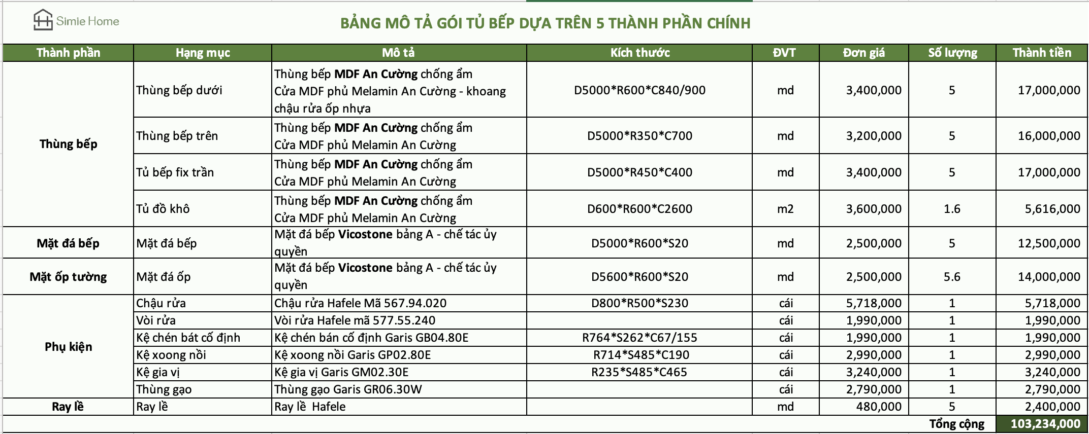 THI CÔNG TRỌN GÓI TỦ BẾP 100 TRIỆU