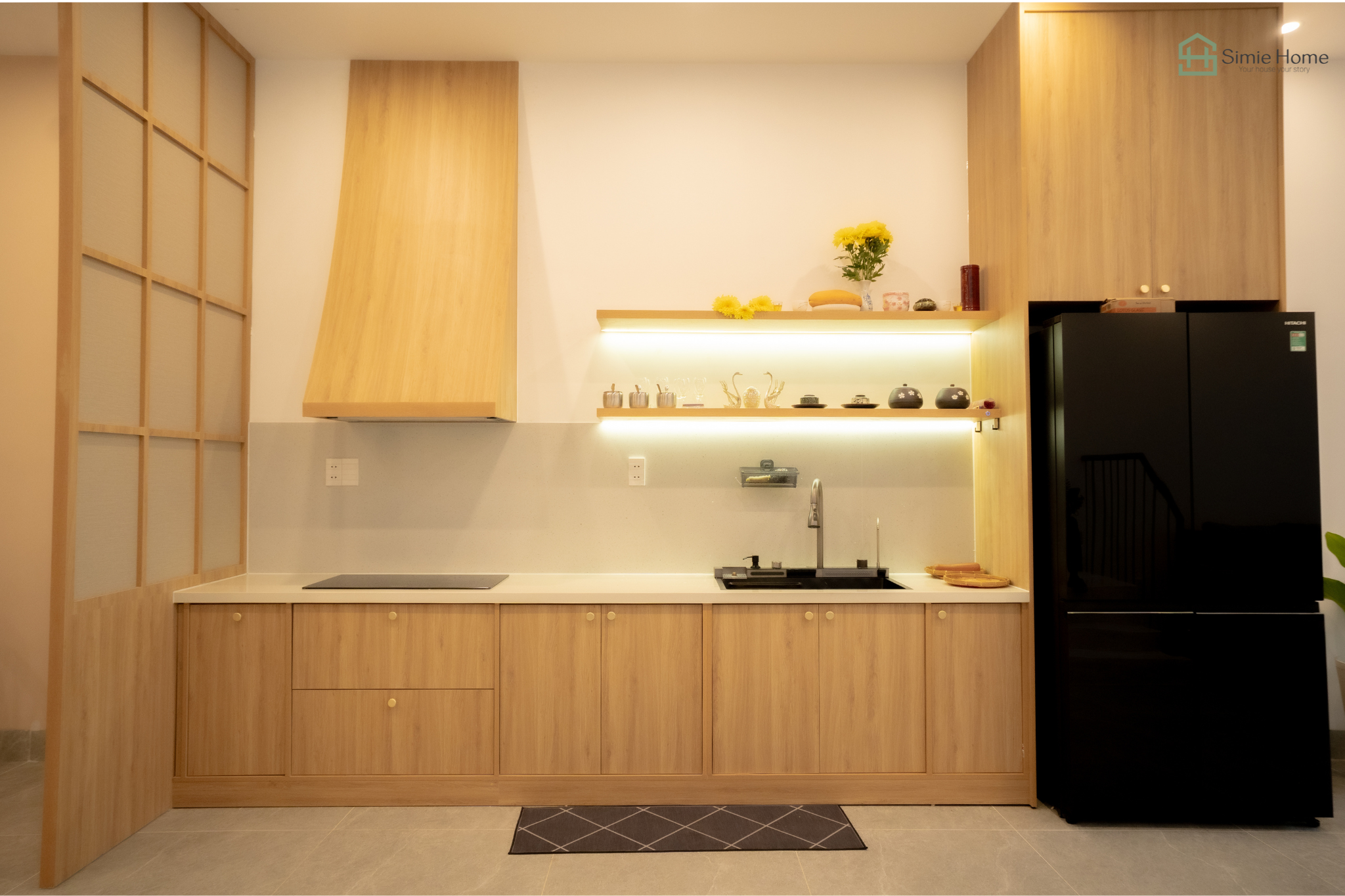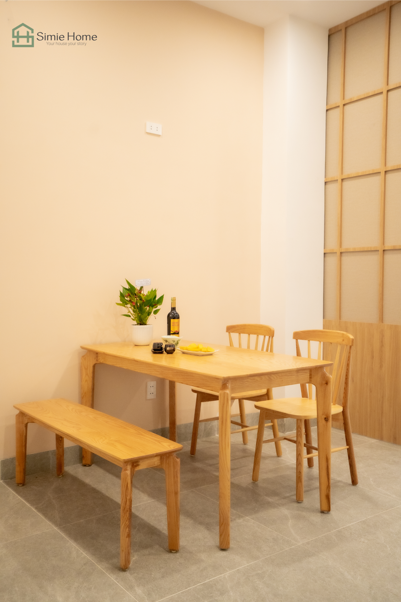 Các bạn cùng xem qua hình ảnh hoàn thiện nhà phố nhỏ xinh bên dưới với gam màu sồi tự nhiên nhé!