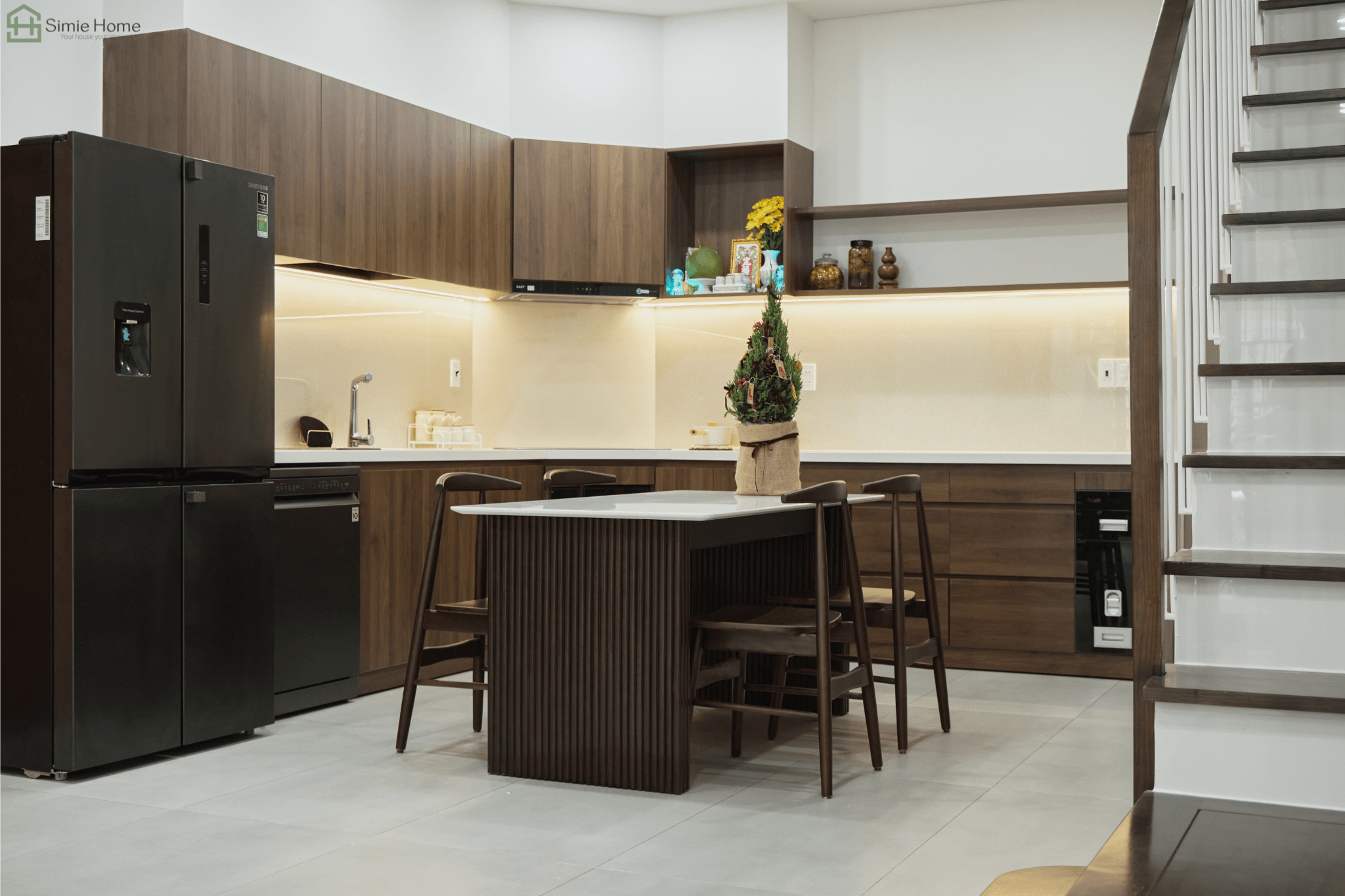 Công trình nhà chị Ny được Simie Home hoàn thiện dựa trên thiết kế có sẵn. Đây là công trình chú trọng sự tối giản, đảm bảo độ bền.