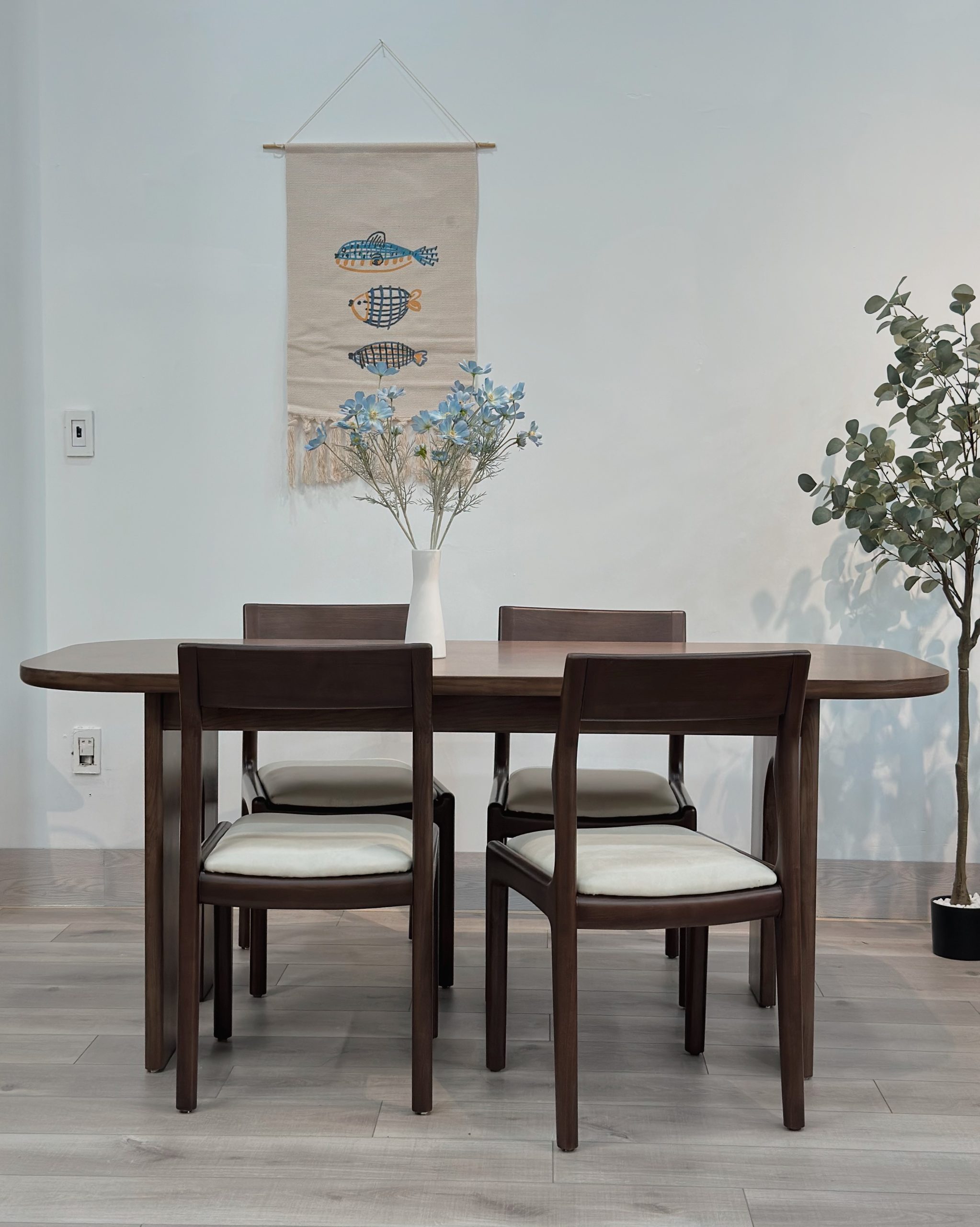Chất liệu bàn: Khung chân gỗ sồi, mặt bàn gỗ Plywood Veneer sồi