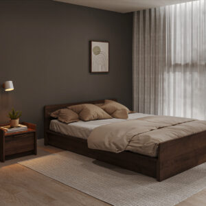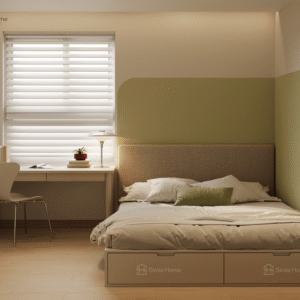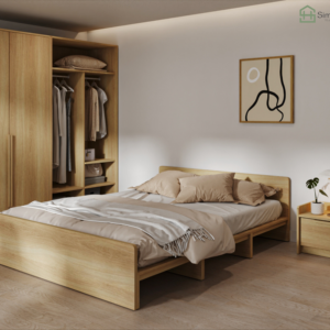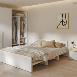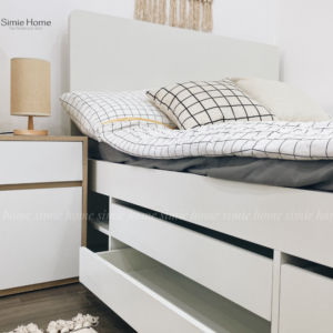 Chất liệu: Gỗ MDF chống ẩm Melamine + đầu giường bọc nệm bố nội địa