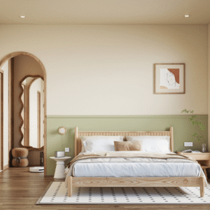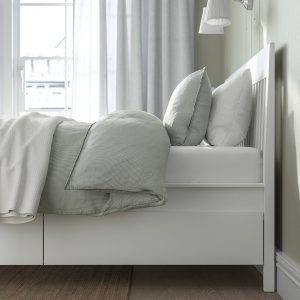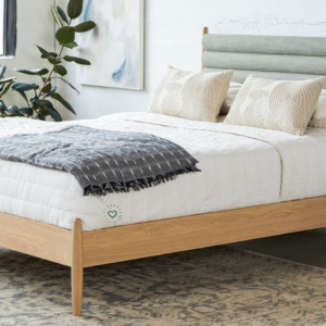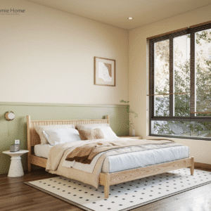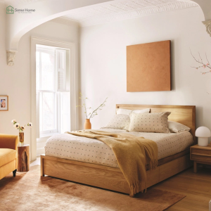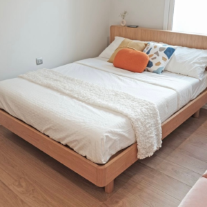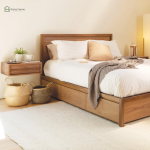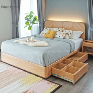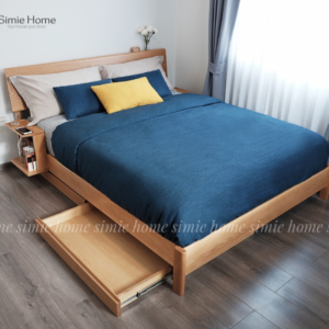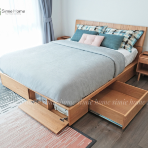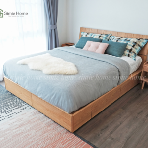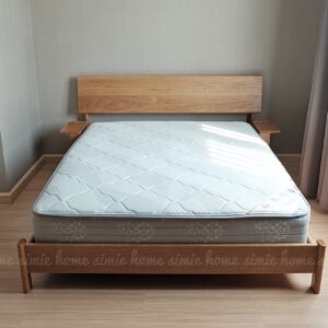 Chất liệu: có chân, làm từ gỗ sồi cứng, mặt nệm MDF chống ẩm, song giường sắt sơn tĩnh điện