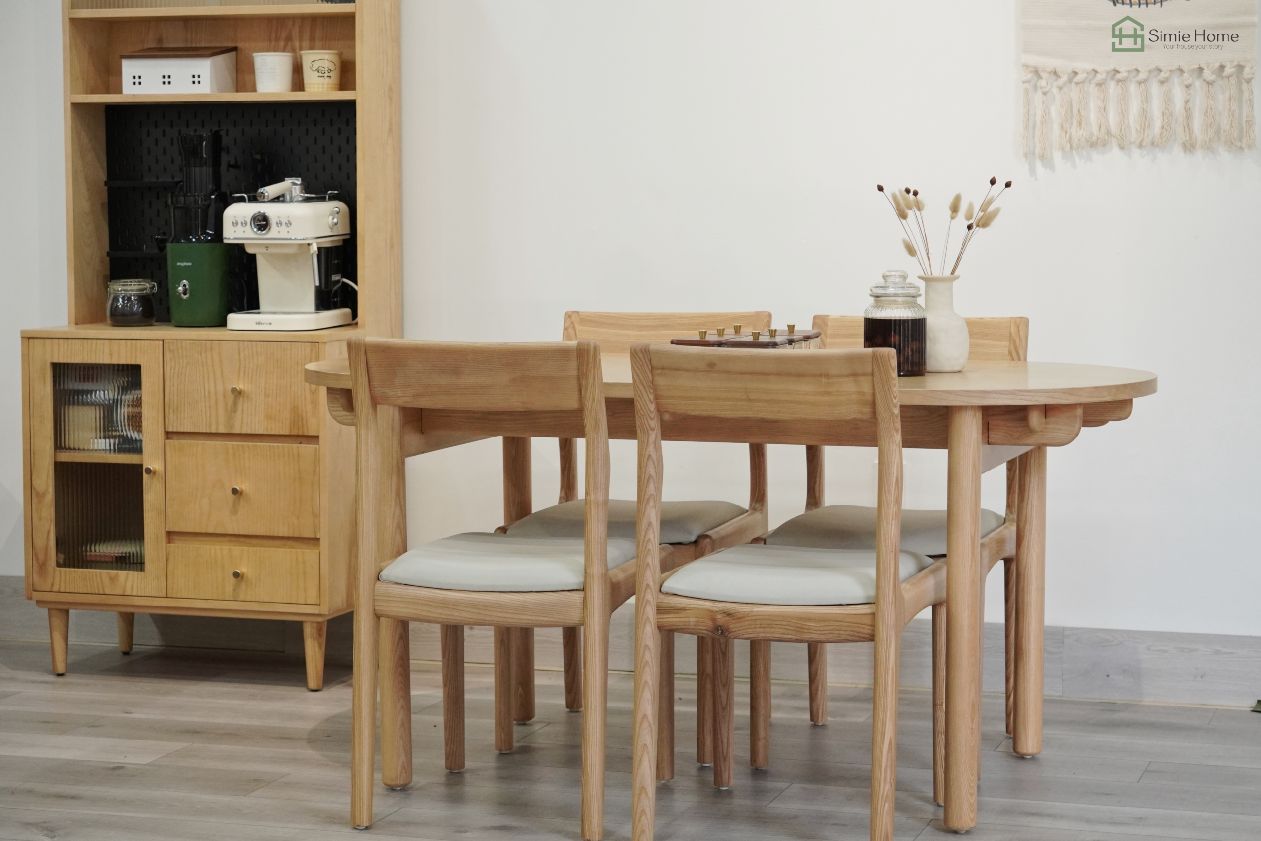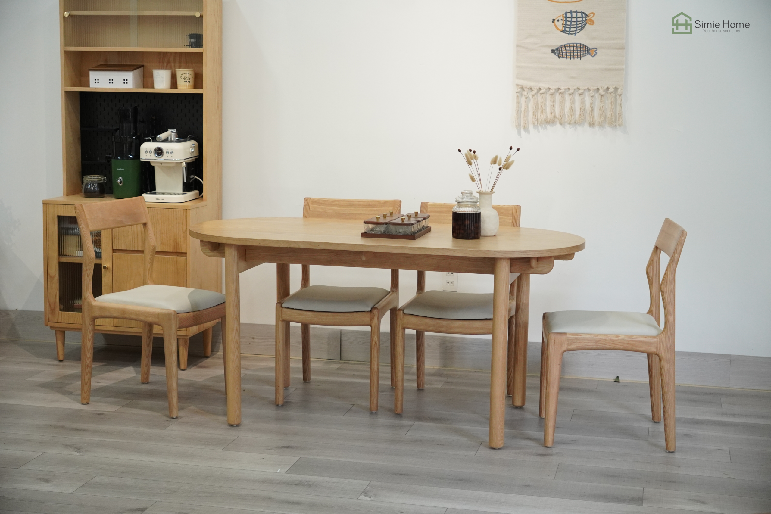 Chất liệu: Khung chân gỗ sồi, mặt bàn gỗ Plywood Veneer sồi