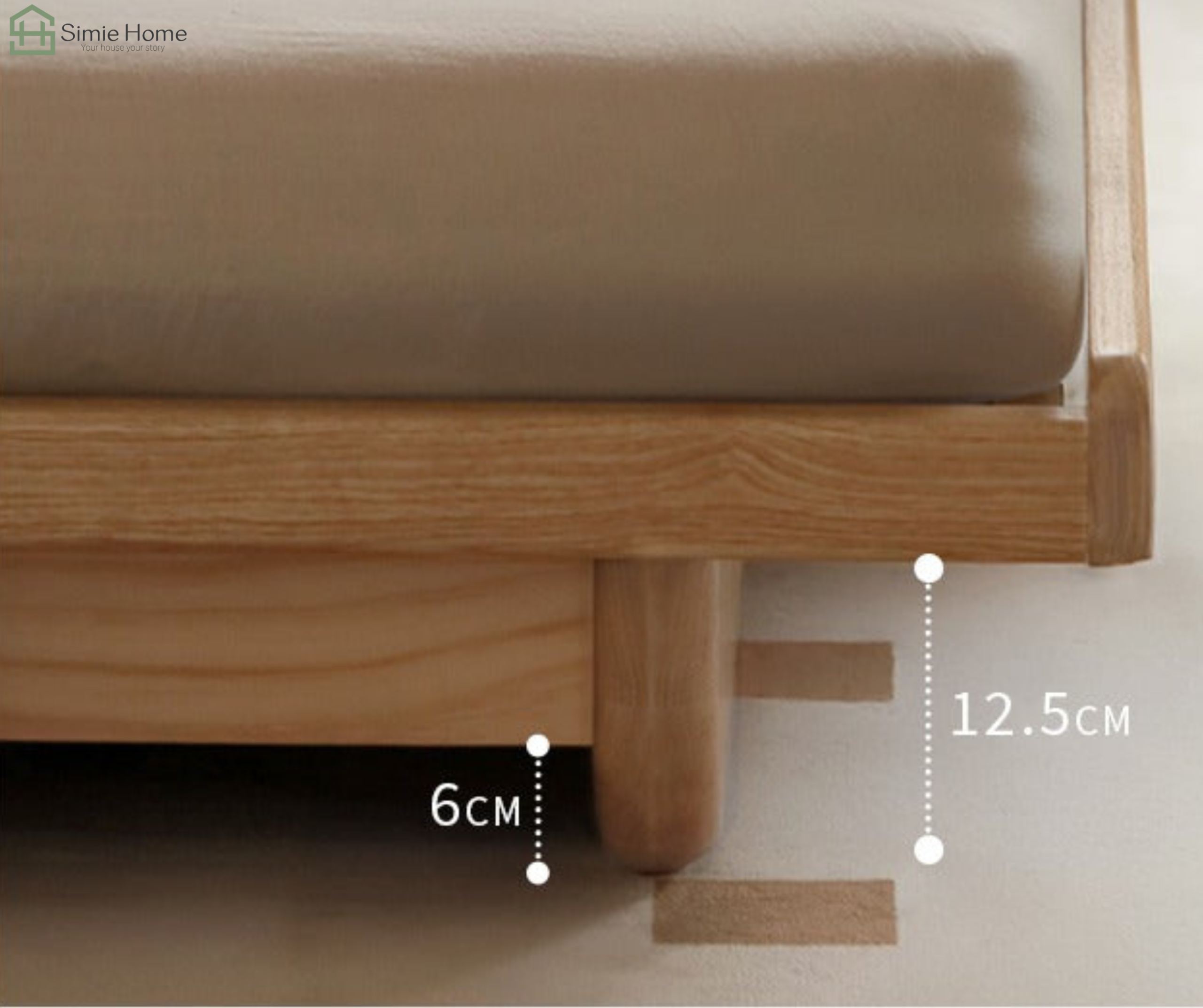 Chất liệu: Gỗ sồi tự nhiên – song giường sắt hộp – sạp giường gỗ MDF Melamine 17mm đồng màu.