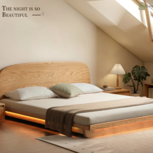 Chất liệu: Gỗ sồi tự nhiên, song giường sắt, mặt nệm sạp MDF Melamine