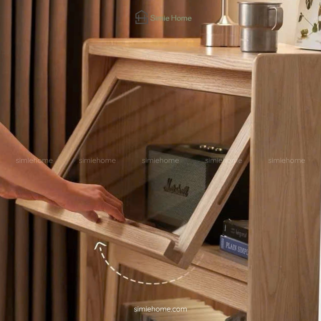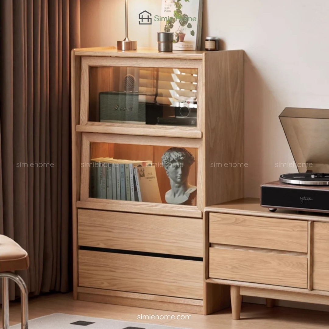 Chất liệu: Gỗ sồi tự nhiên kết hợp kính trong